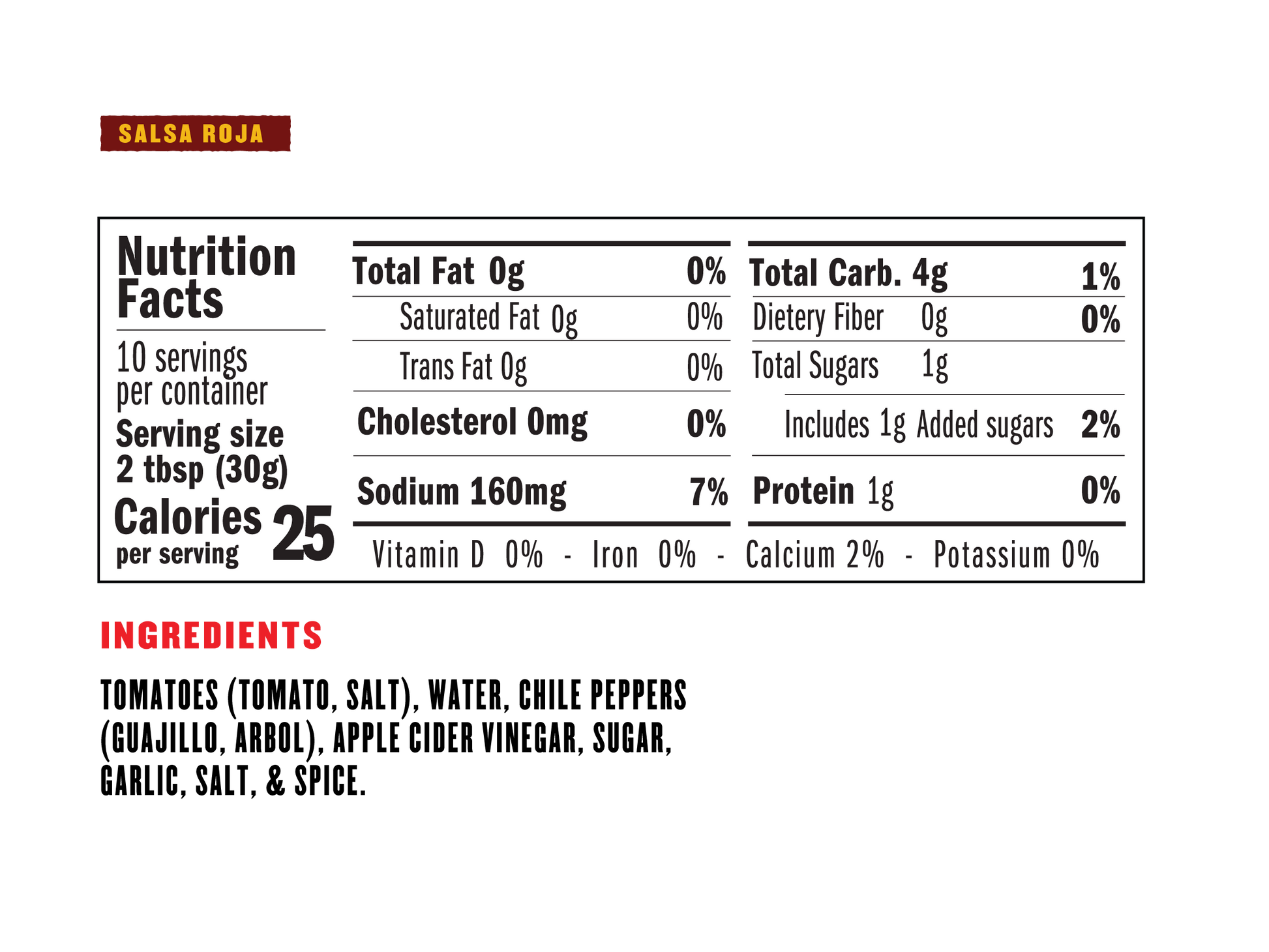 Our Spicy Salsa Roja blends vibrant red guajillo chile with the flavorful heat of arbol. This refined salsa delivers a nice kick, a slight sweetness, and a smooth texture